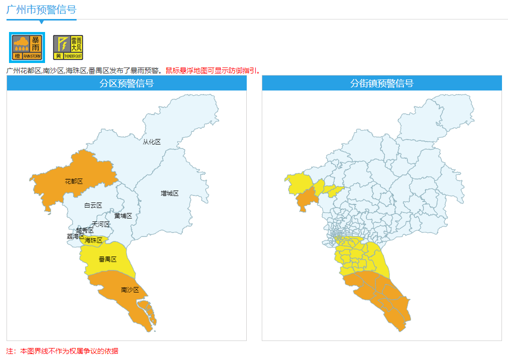 截至3日10時50分,廣州南沙區、花都沒有人愛好「他人的孩子」。孩子撇撇嘴,回身跑了。區已發布暴雨橙色預警,海珠區、番禺區暴雨黃色預警正在失效中,上述4區均發布雷雨年夜風黃色預警。